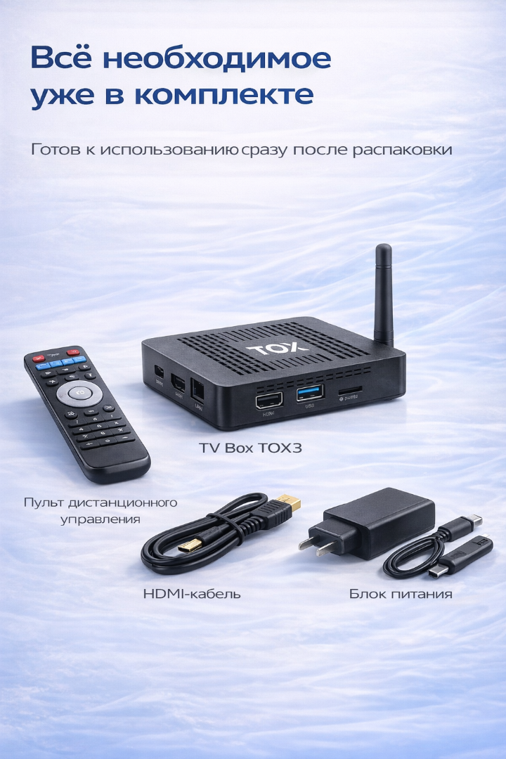 Новый ТВ-бокс TOX3 с Android 11 и SoC Amlogic S905X4. Обновление бестселлера. Обновленная смарт приставка TOX3 4/32 – это современное решение для превращения обычного телевизора в умный мультимедийный центр. Благодаря 4 ГБ оперативной памяти и 32 ГБ встроенной памяти, устройство обеспечивает быструю работу и плавное воспроизведение контента. Купите TOX3 4/32 в Минске и Беларуси с быстрой доставкой и гарантией. Ощутите новые возможности вашего ТВ уже сегодня!